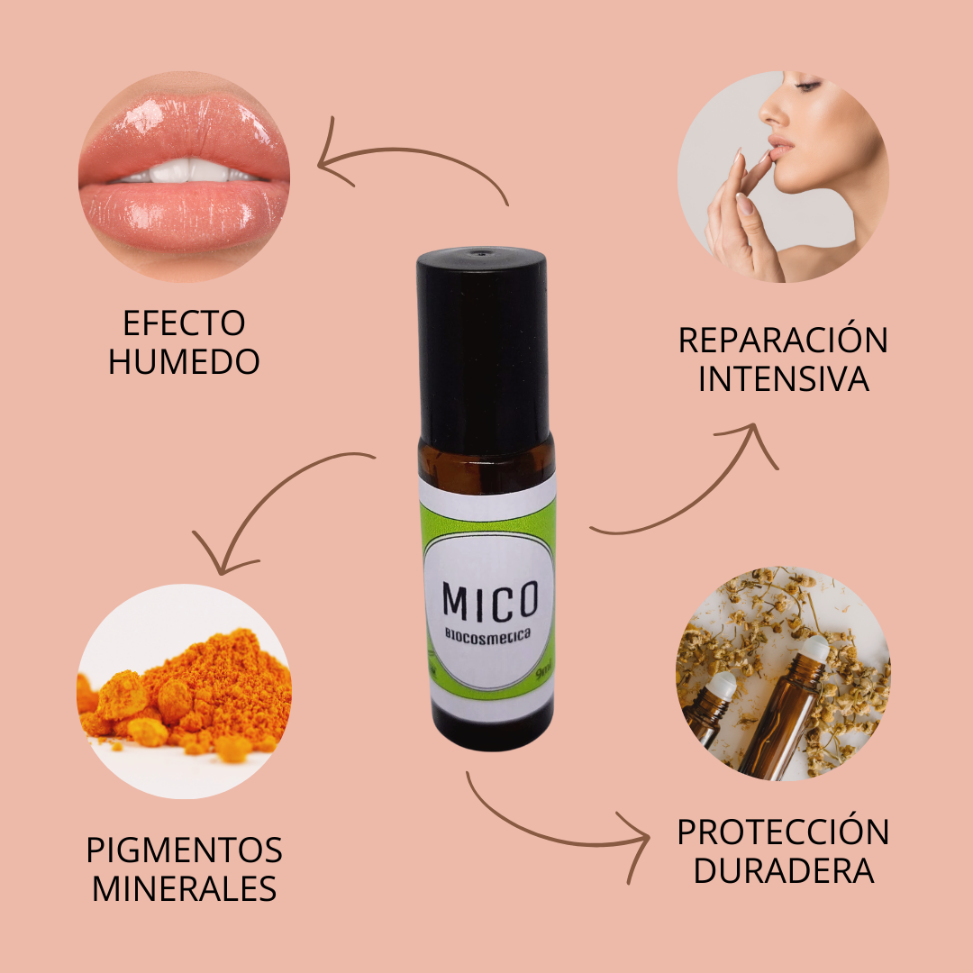 Modo de uso: Aplicar sobre los labios limpios y secos, deslizando el roll on. Aplícalo también sobre pómulos para dar un toque de luminosidad mientras que nutrís, humectas la piel.