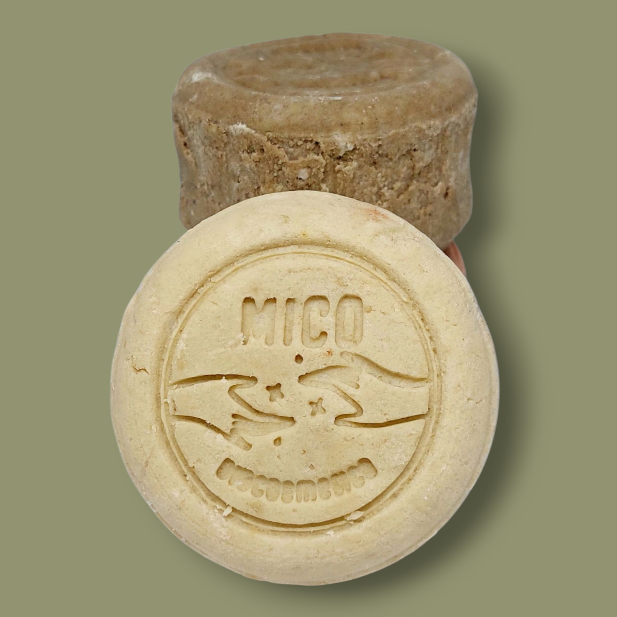 El shampoo sólido Mico biocosmética está elaborado artesanalmente con ingredientes de origen natural y vegetal con la finalidad de limpiar en profundidad el cuero cabelludo, liberándolo de toxinas, oleosidad y residuos, manteniendo su pH equilibrado, nutrido, humectado y sano.